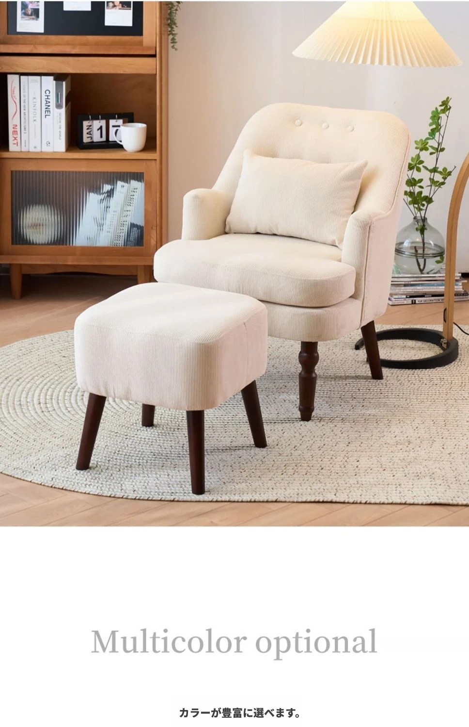 ホワイトコーデュロイ一人用+スツール【腰枕付き】