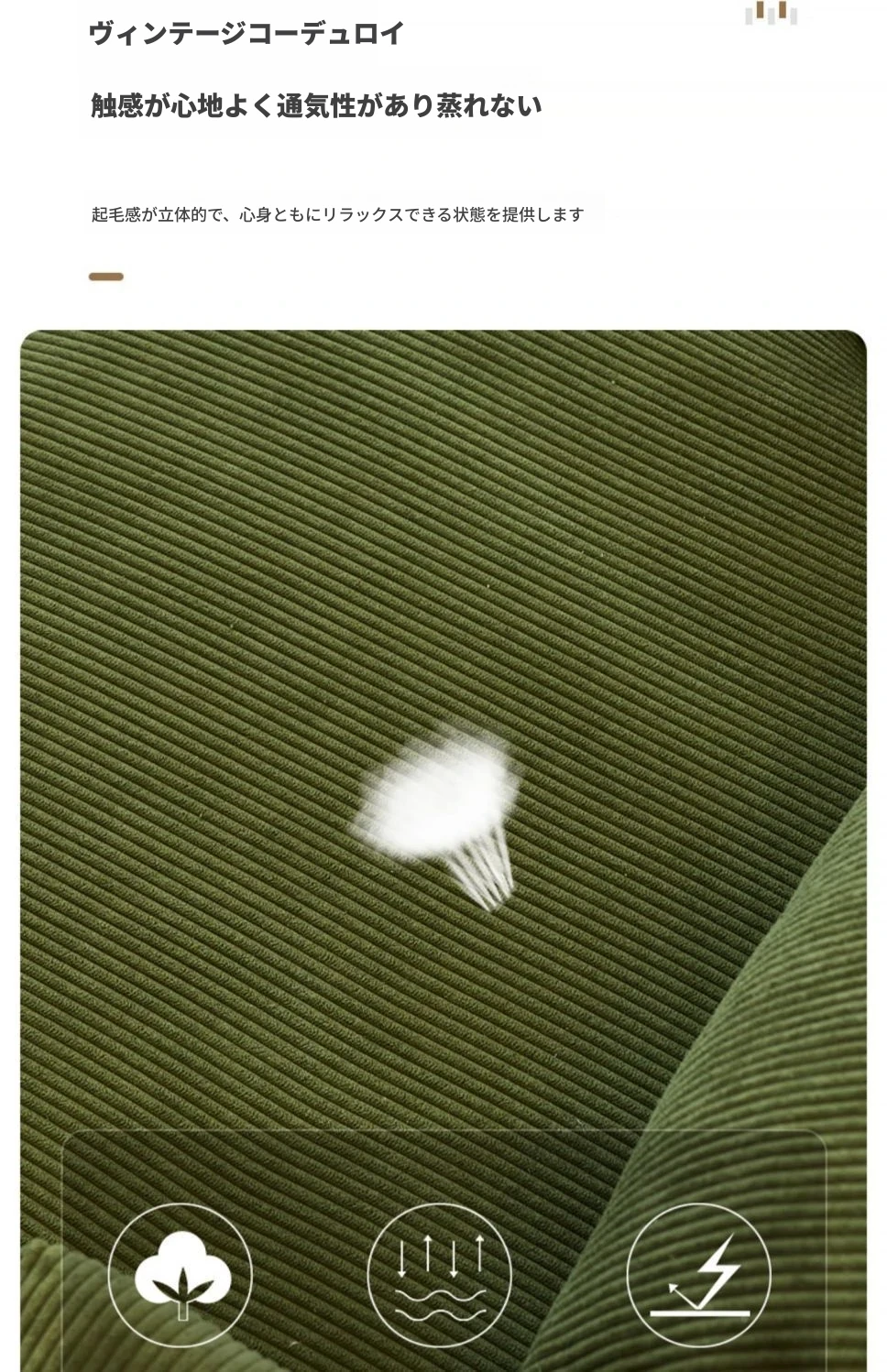 ダークグリーンのコーデュロイ一人用【腰枕付き】