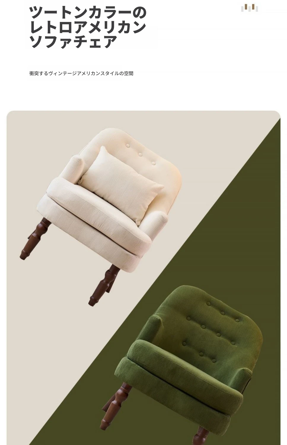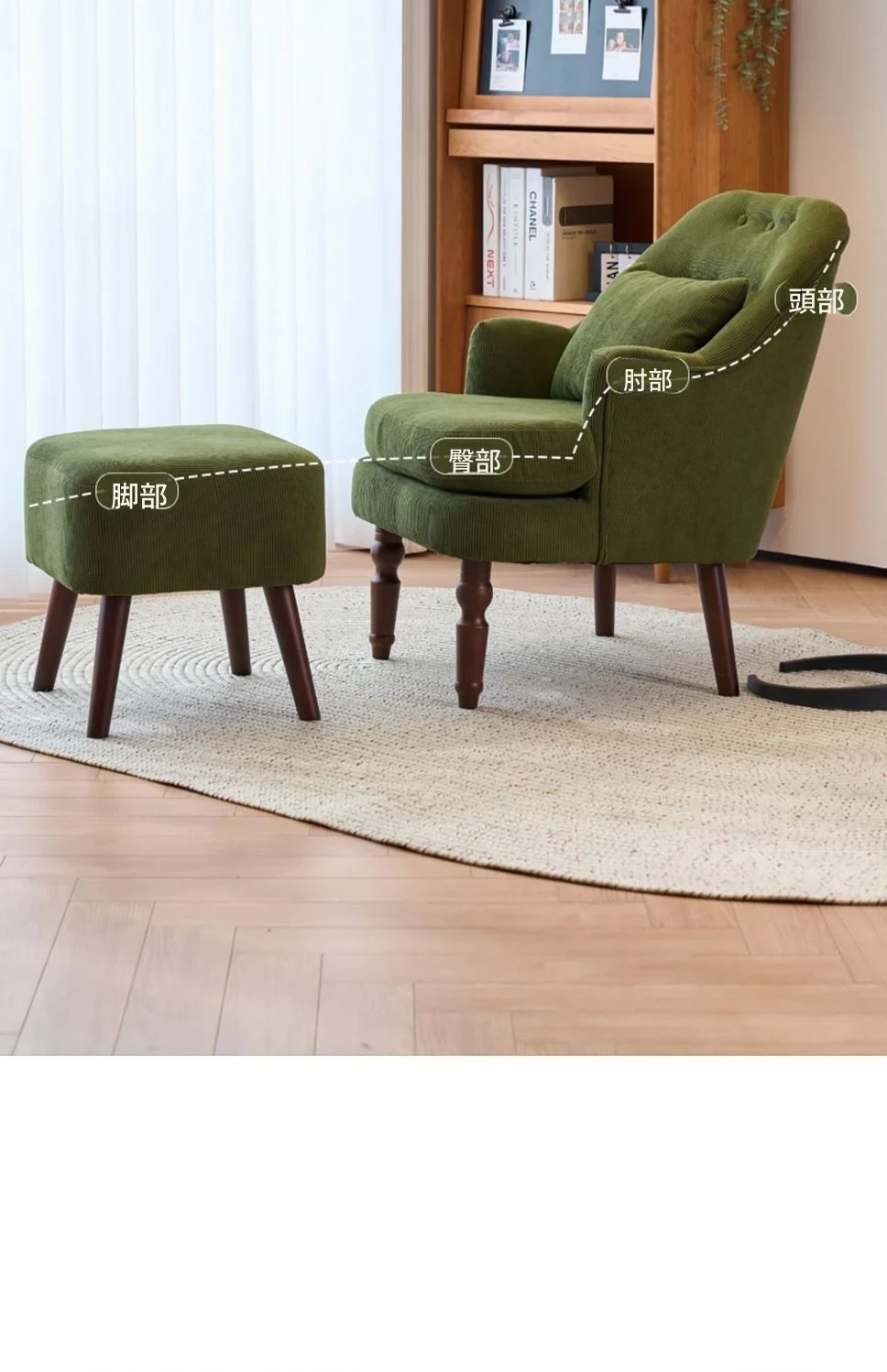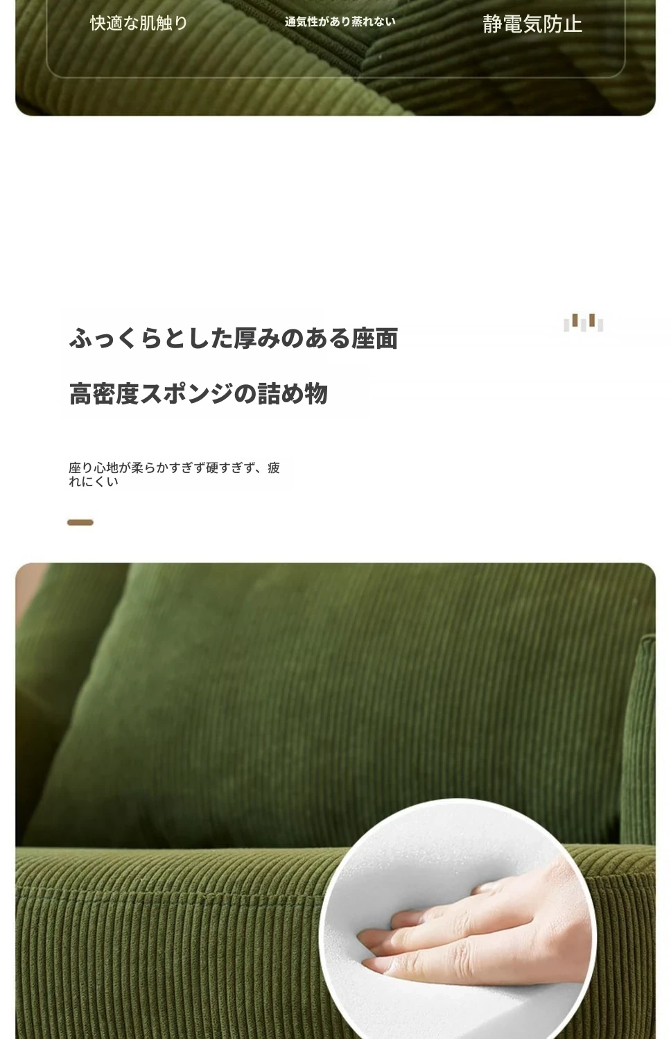 ダークグリーンのコーデュロイ一人用+スツール【腰枕付き】