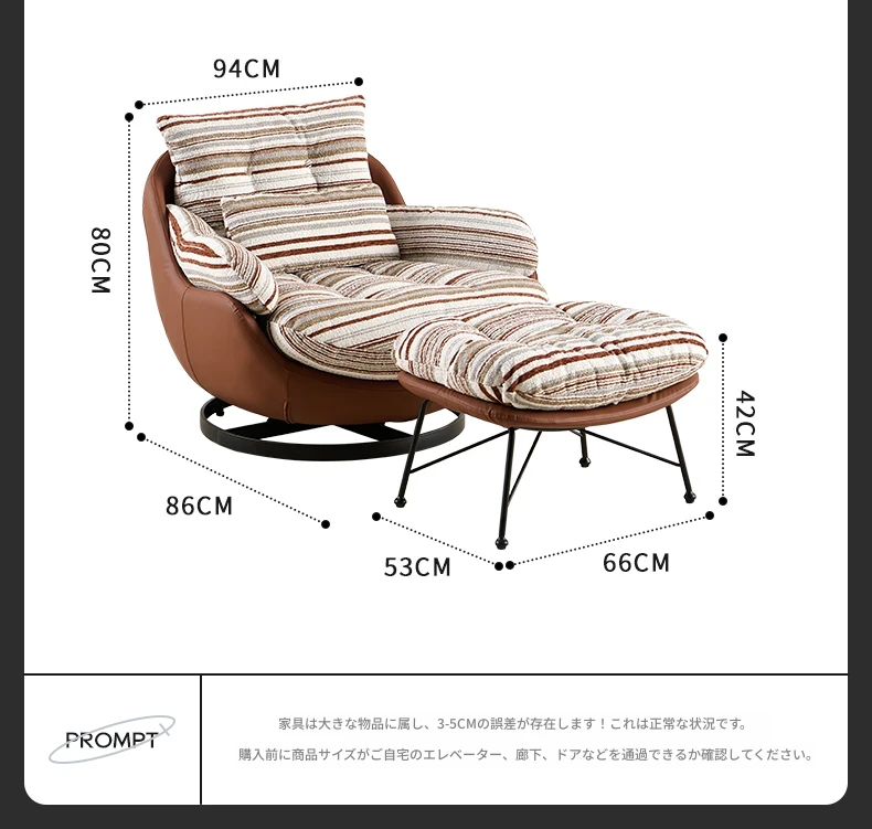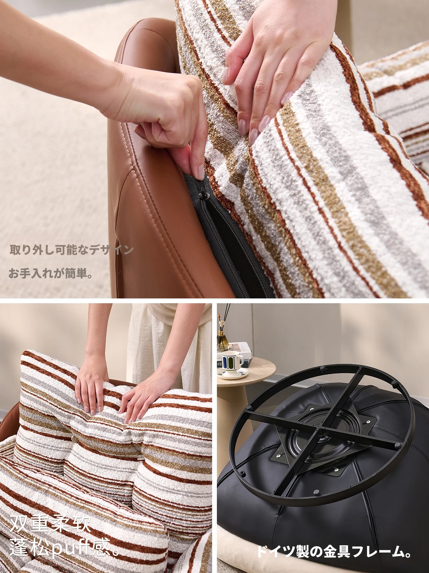 カプリ回転椅子 ボッシーストライプ フットスツール付き