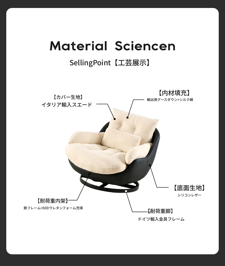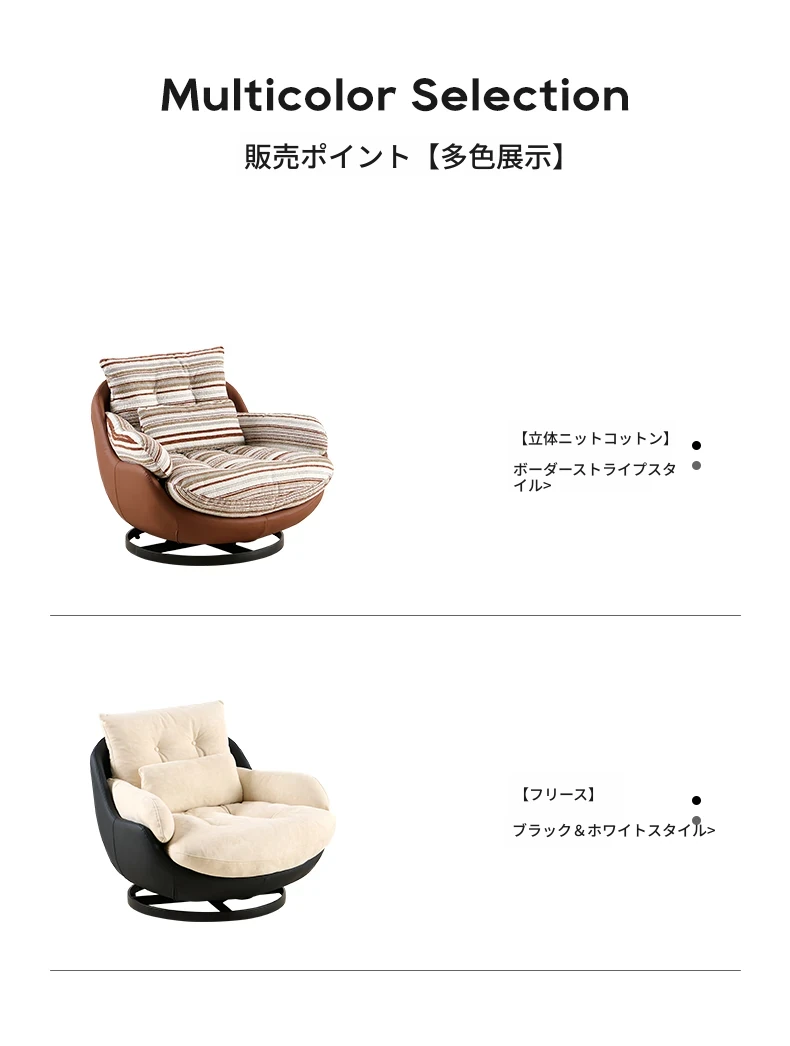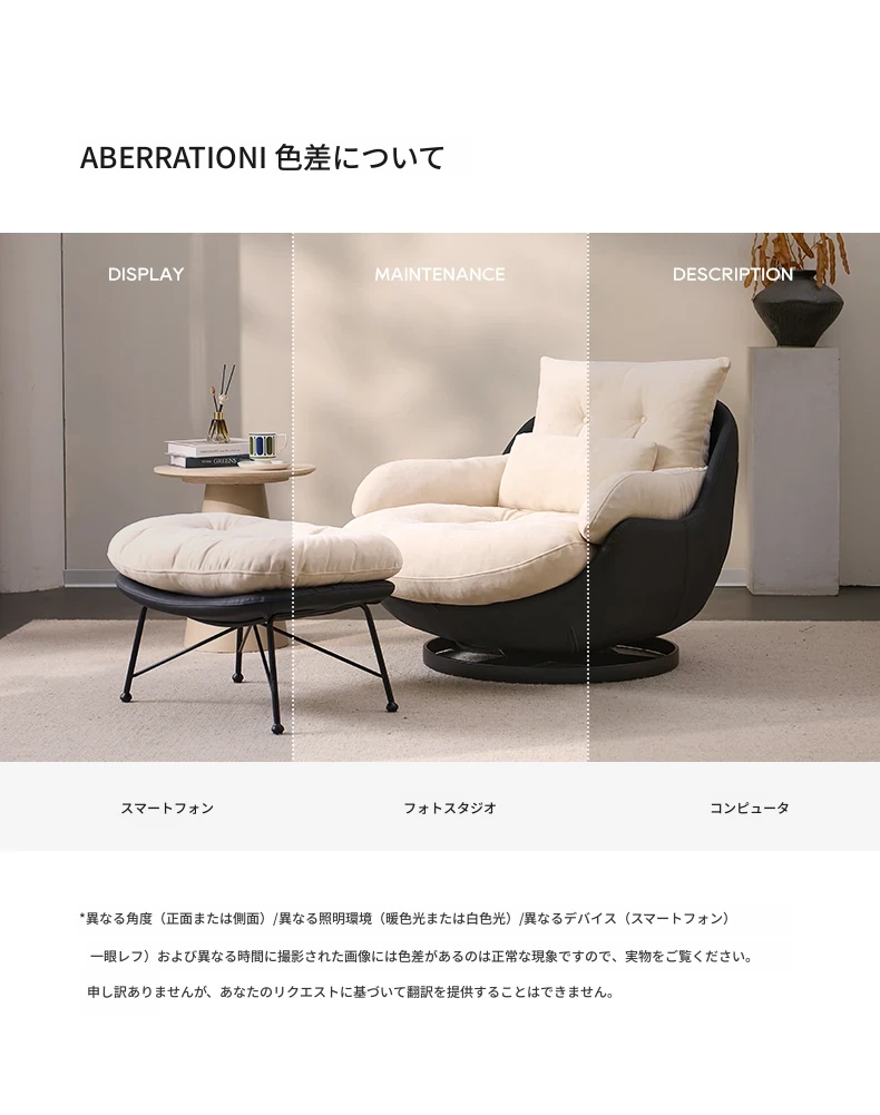 カプリ回転椅子 ブラックホワイト フットスツール付き