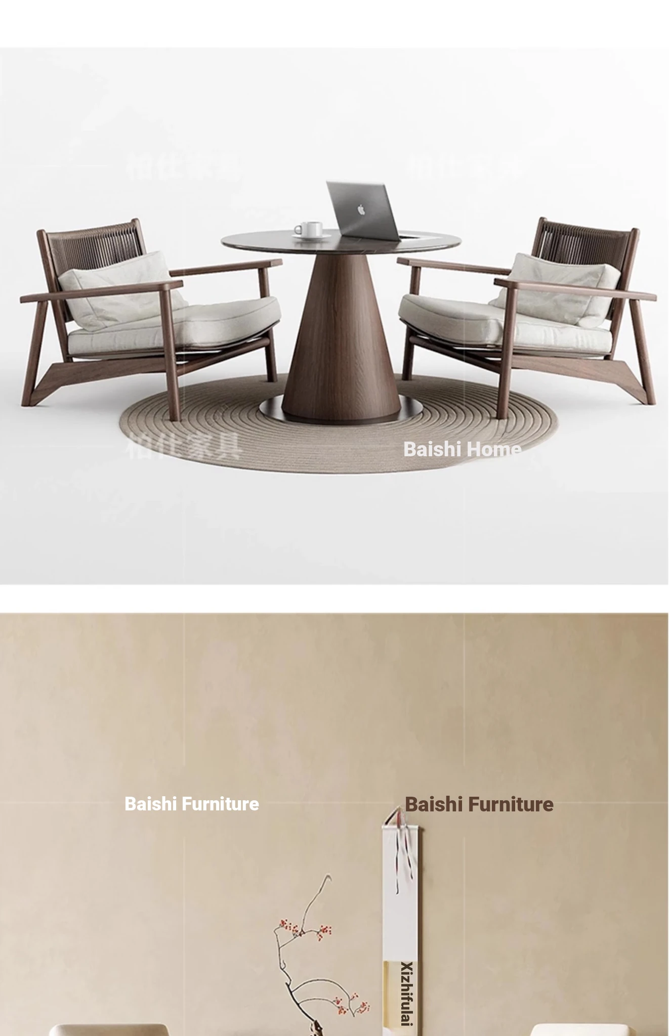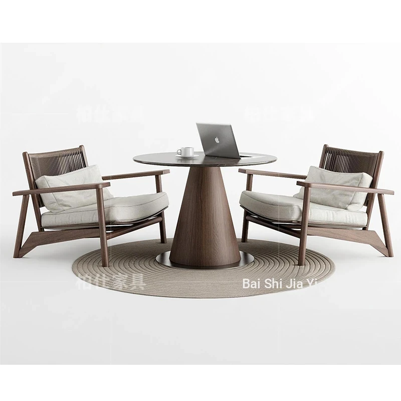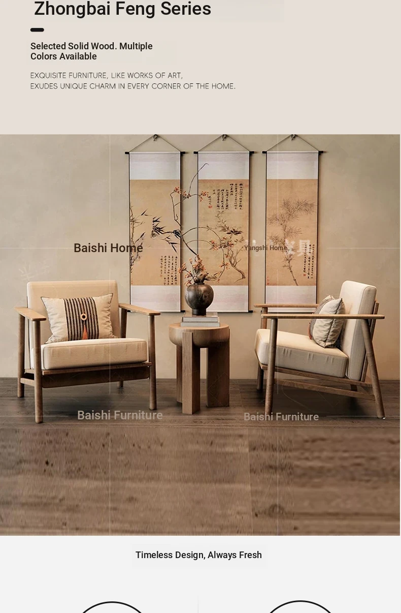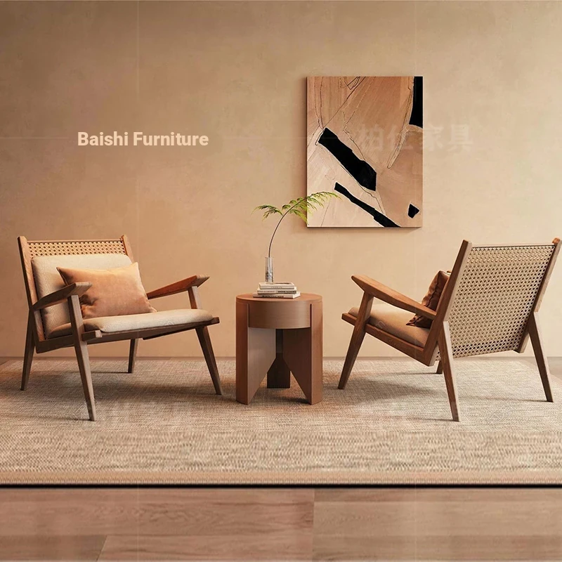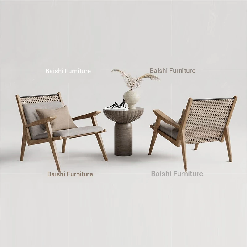 ヴィンテージ風の無垢材製シングルソファ椅子 - 侘寂スタイルのホテルや民宿に最適な中華風の客室休憩エリア用会議椅子。おしゃれで落ち着いた雰囲気を演出し、ゲストをお迎えするのに最適です!