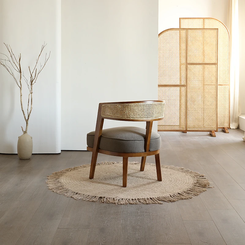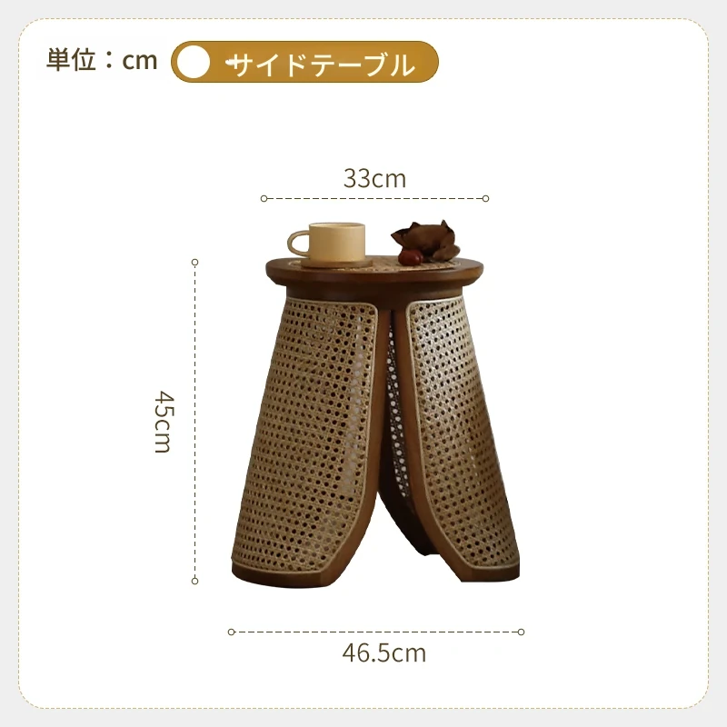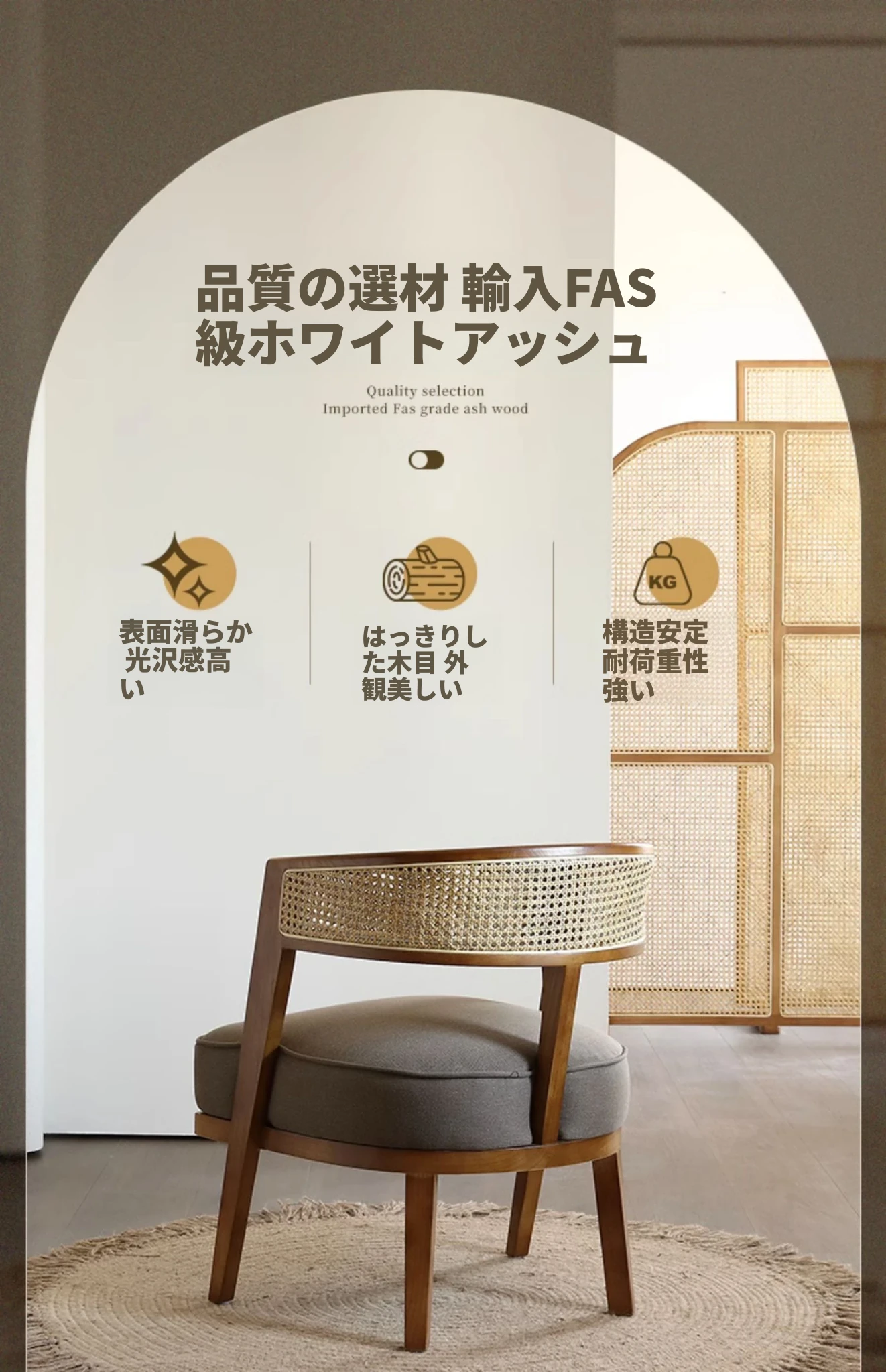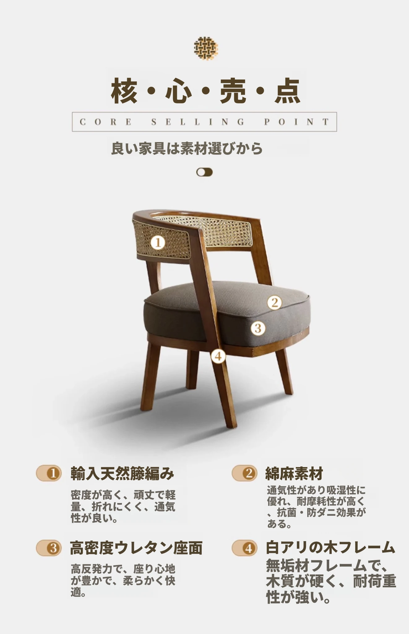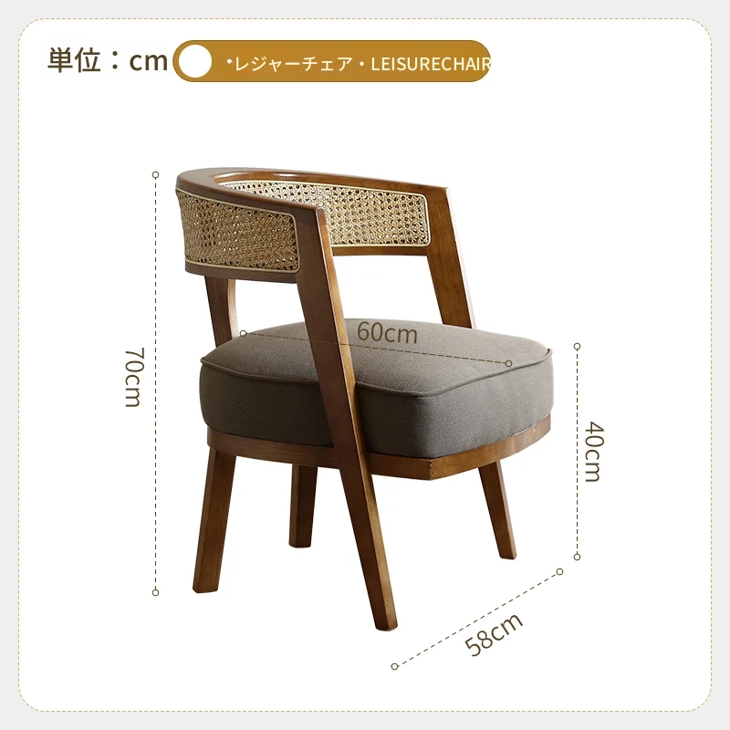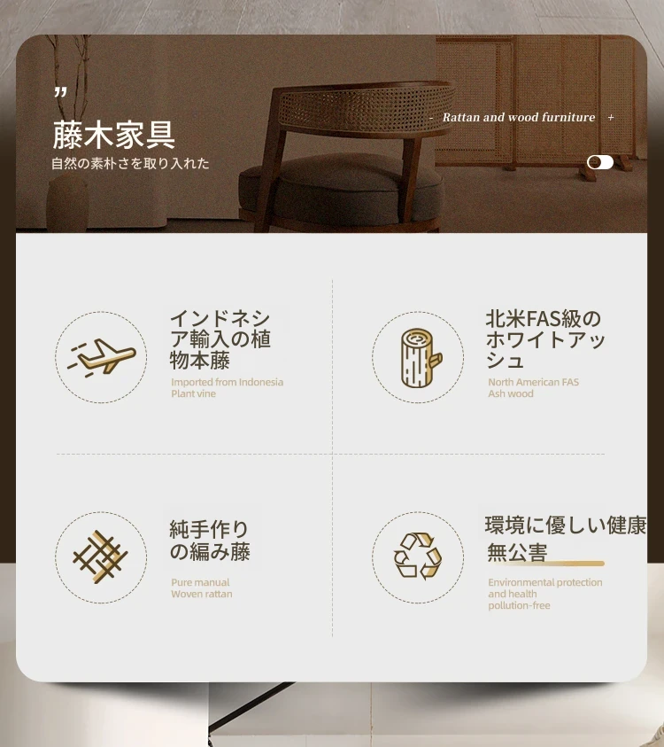 侘寂風の藤製椅子とテーブルの3点セット - 民宿やバルコニーに最適なリラックスソファー椅子、天然木と藤編みの背もたれ付き、家庭用にもぴったり!心地よいひとときをお楽しみください。