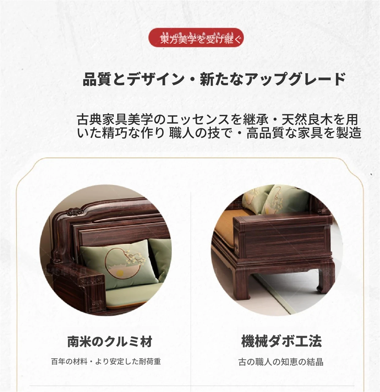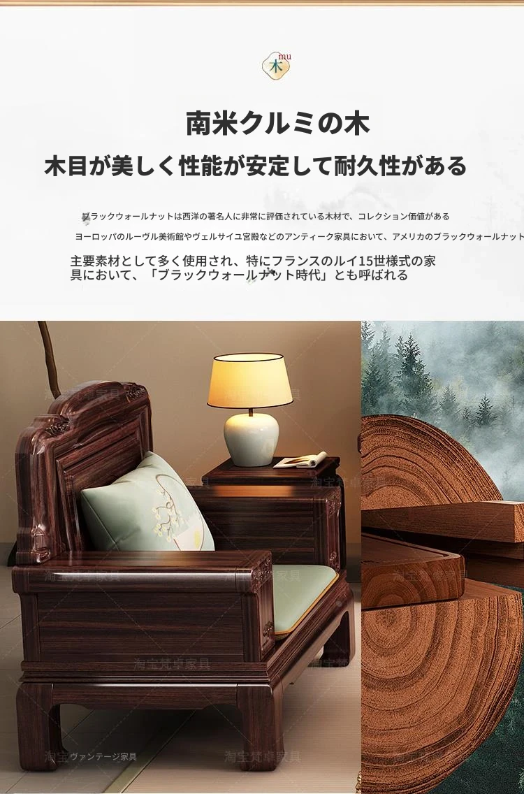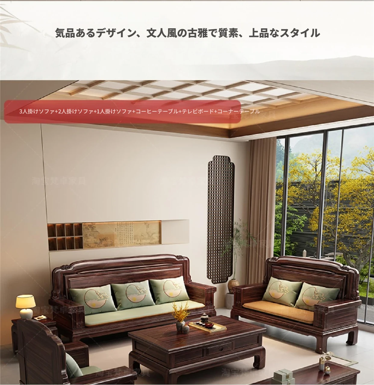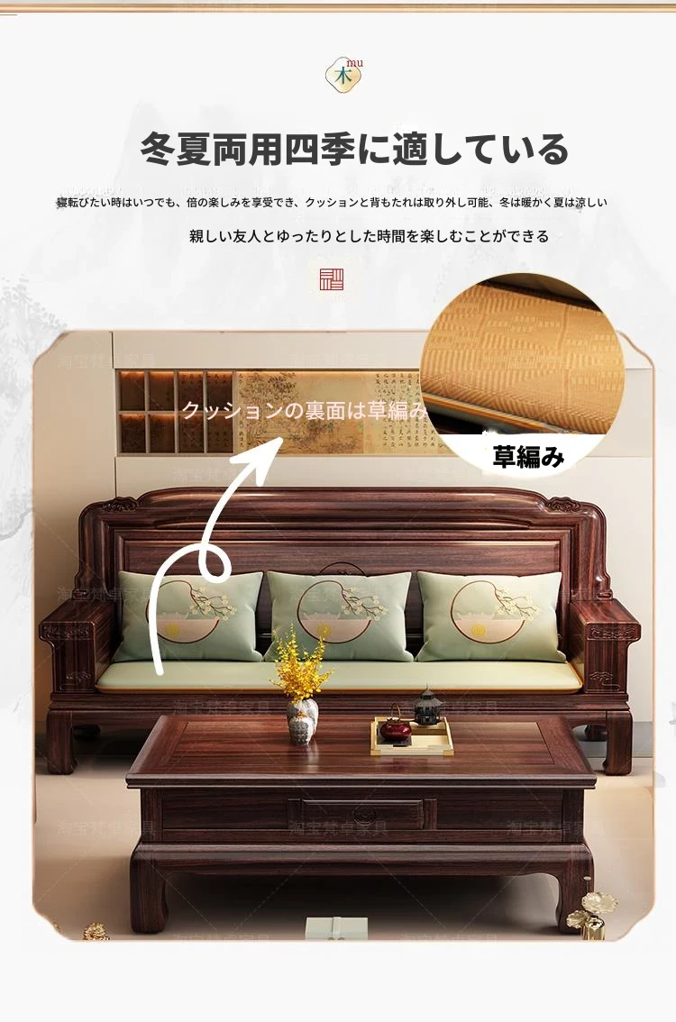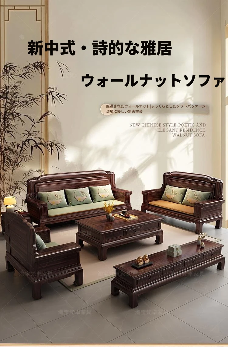 ウォールナット無垢材使用!夏冬兼用のクラシックな紅木ソファセット。別荘や広めのリビングにもぴったりな国潮スタイル家具で、上質な空間を演出します。