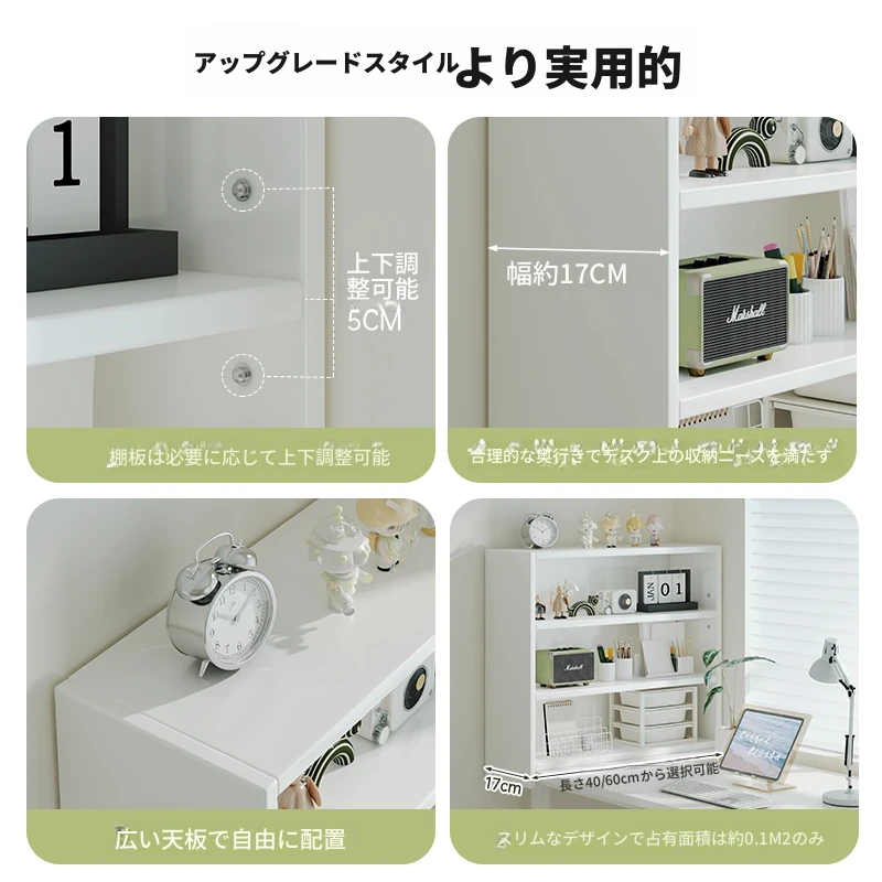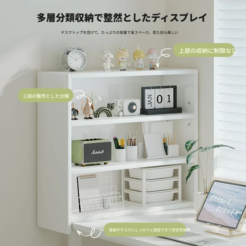 ホワイトデスクシェルフ 多層スタンド収納ラック 壁にぴったりフィット 大容量ディスプレイ書棚 おしゃれな整理整頓を実現!本や小物を美しく収納し、あなたの空間をスッキリ魅せるアイテムです。