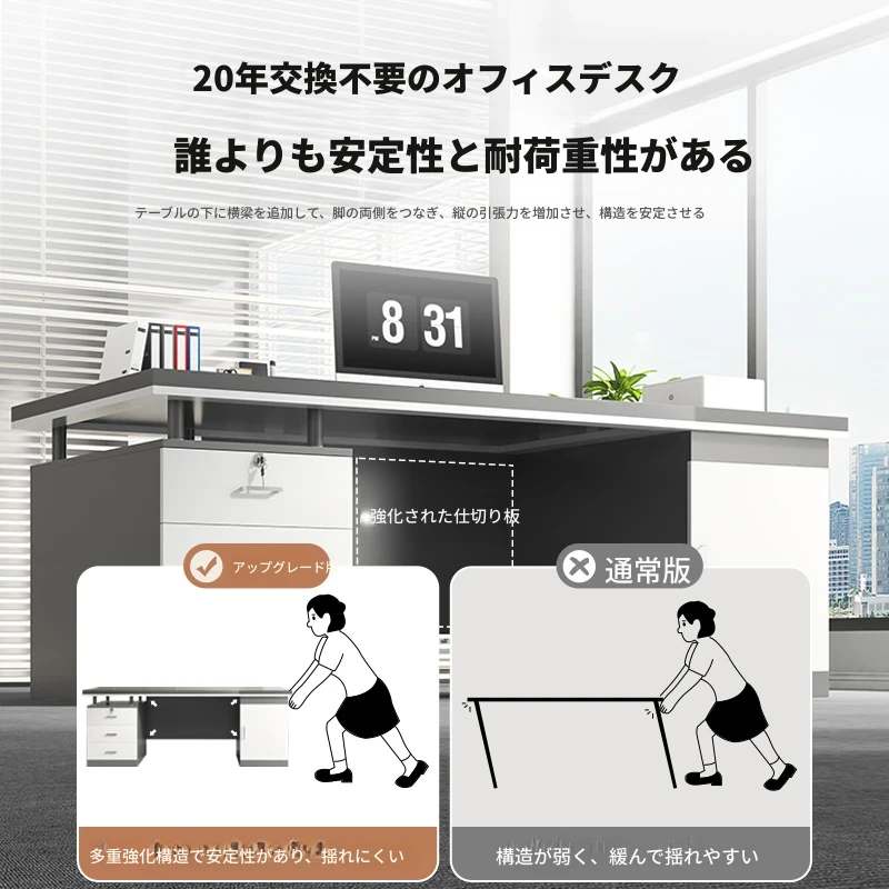 シンプルで洗練されたオフィスデスク - 引き出し付きの2025年新作エグゼクティブデスク。快適な作業環境を実現し、リーダーにふさわしいスタイリッシュなデザイン。あなたのオフィスを格上げする一品です!