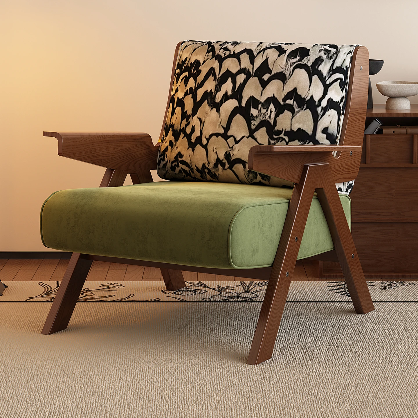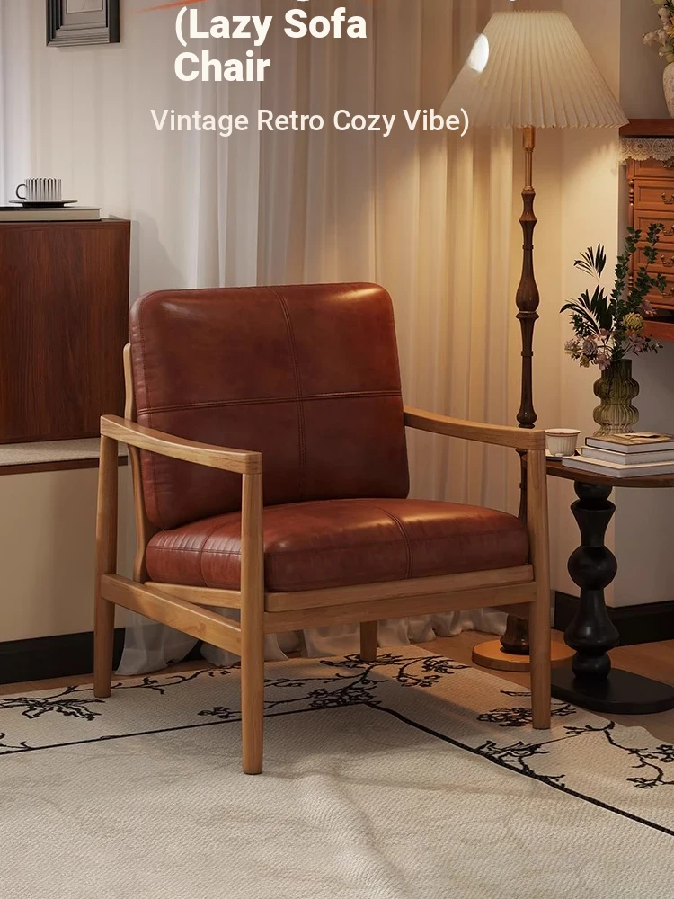 Hank Solid Wood Single Sofa Chair - Retro Nordic Armchair for Bedroom and Living Room, Perfect for Relaxation and Leisure, Vintage Style