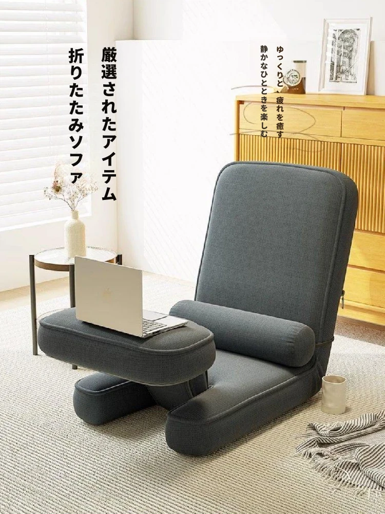 おしゃれで快適!フロアソファ 一人用 折りたたみ式 リラックスチェア バルコニーや寝室に最適な和風畳スタイル くつろぎながら寝ることもできる!