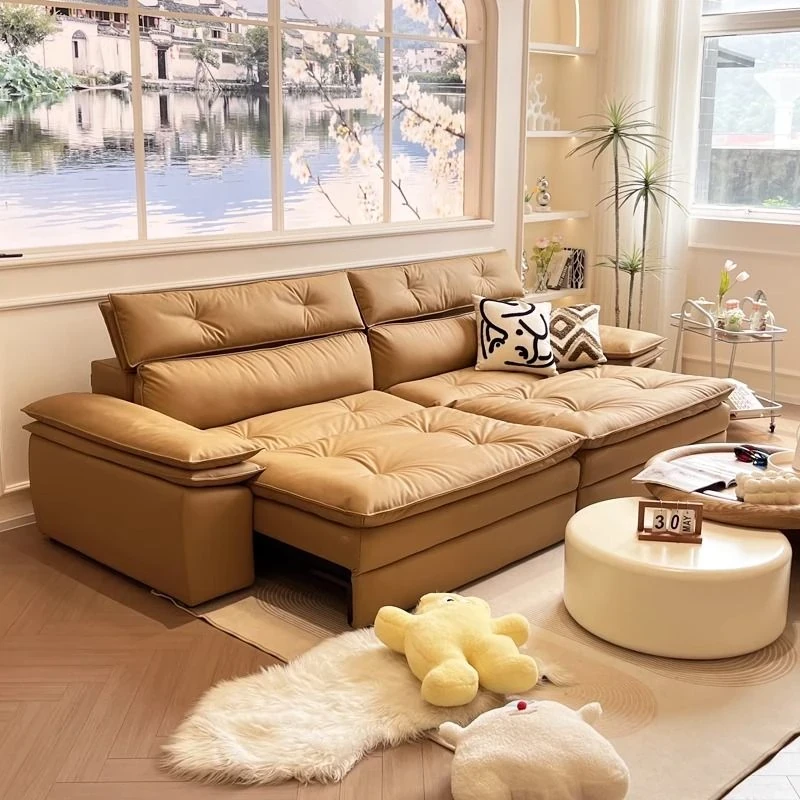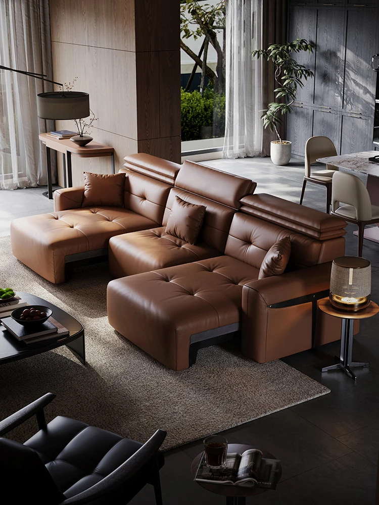 Multi-Functional Electric Sofa - Modern Minimalist Wall-Hugging Recliner, Italian Style Genuine Leather Sofa Bed with Extendable Features