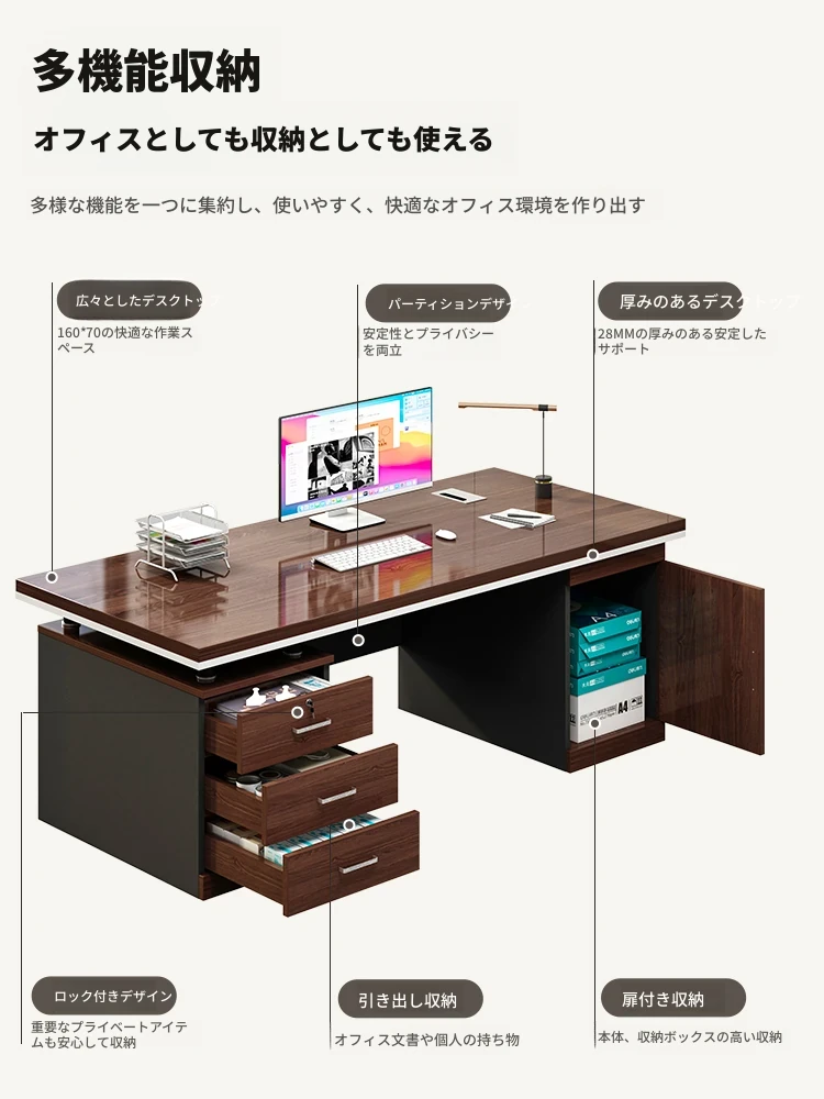 シンプルでスタイリッシュなオフィスデスク&チェアセット - 自宅やオフィスに最適な現代的なデザインで、快適な作業環境を提供します。ボス用デスクとしても、スタッフ用デスクとしても最適です!